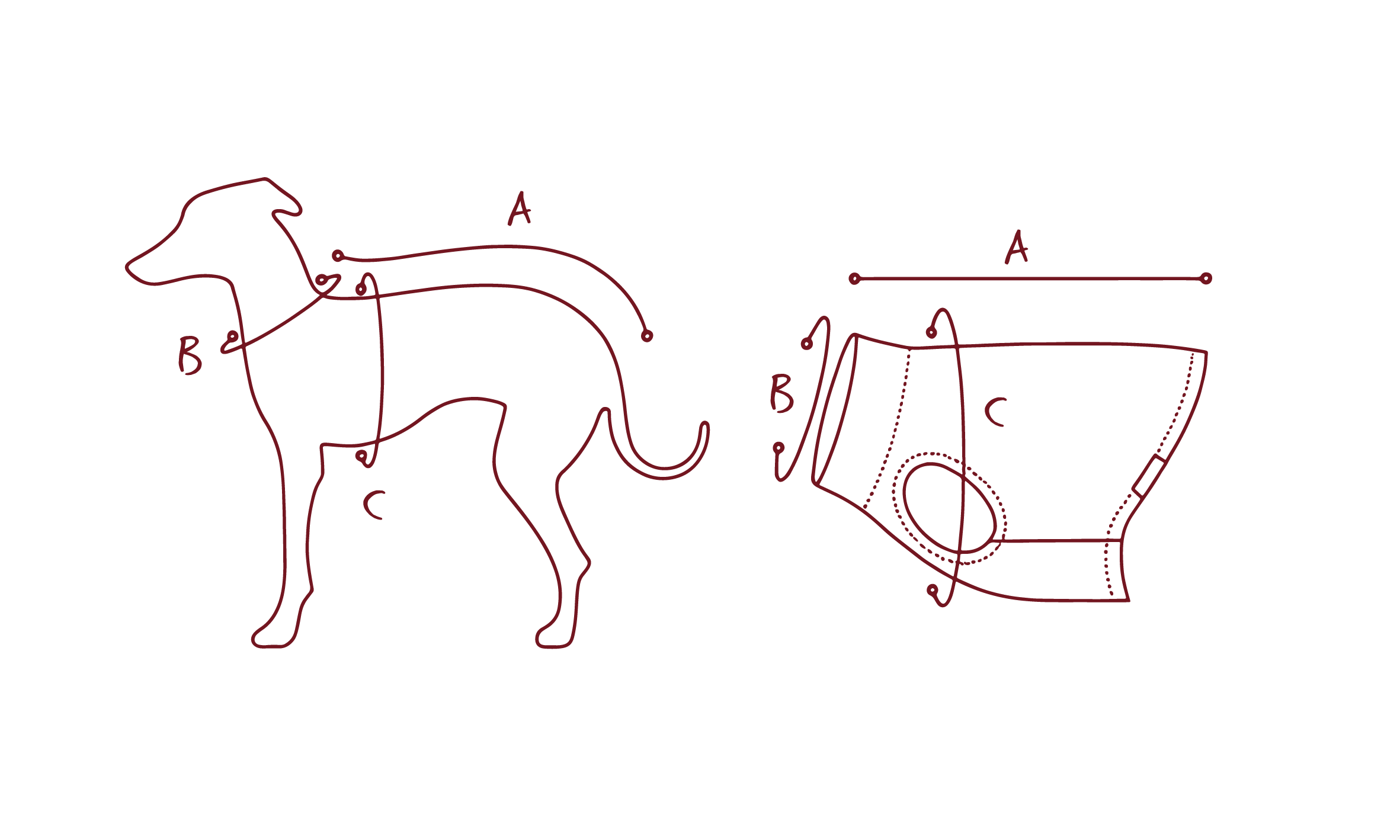 We want to make purchasing apparel for your pet as easy and exciting as possible. Underneath you will find clear guidelines on how to pick the right size for your pet in addition to the size charts of all our products. Note that the size charts refer to the lengths/measures of your dog! If you have any further questions relating to our products or sizes, please don't be afraid to contact our customer support. We are more than happy to help you find the perfect apparel for your pet!